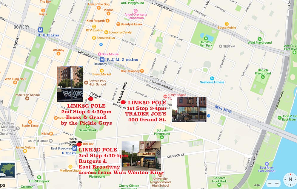4:30-5pm – Jumbo pole at East Broadway and Rutgers Street on the Seward Park side across from Wu’s Dumpling King